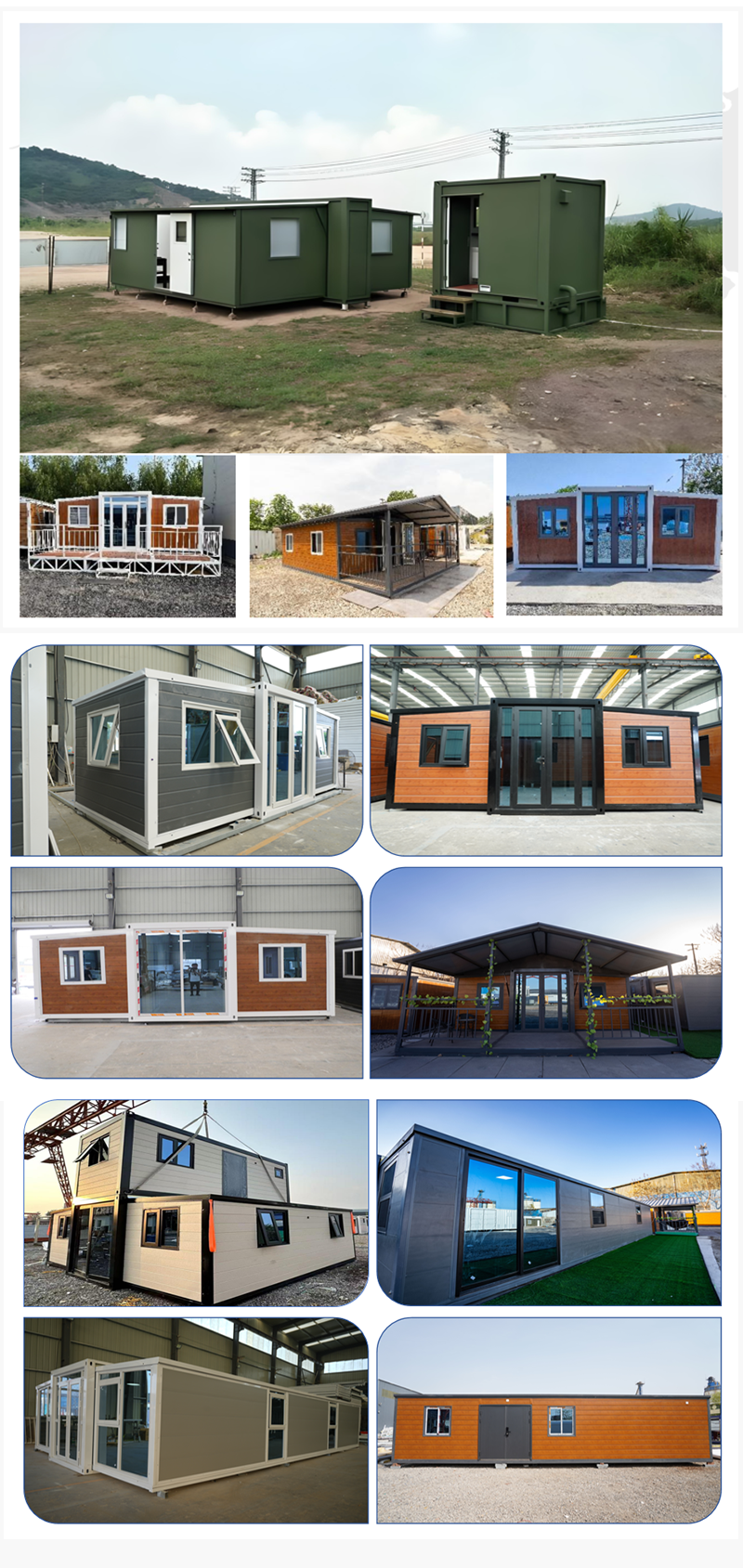 The biggest feature of the temporary resident container house with double wing expansion house is that it has a double wing structure that can be expanded. This design enables the container house to be compact and portable, and at the same time, it can be flexibly expanded according to actual needs. This container house is not only suitable for short-term temporary accommodation needs, such as construction sites, natural disaster relief, etc., but also can be used for long-term residence, such as tourist camps, small communities, etc.
